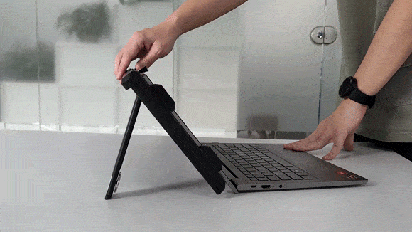 「Kwumsy P1 Plus」のバックパネルは、自由に幅を調整できるようにデザインされ、13.5~16.5インチのノートPCをサポートします。