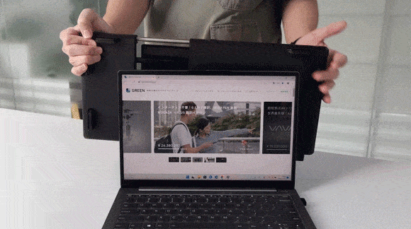 「Kwumsy P1 Plus」とは、お持ちのモバイルワークステーションをパワーアップできる折り畳み式モバイルモニター、マルチスクリーンを追加することで作業スピードを倍増できます。
