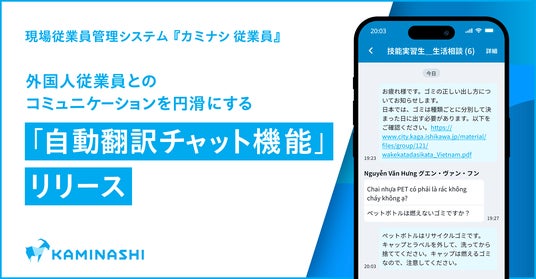 現場DXプラットフォーム『カミナシ』シリーズを提供する株式会社カミナシ(本社:東京都千代田区、代表取締役:諸岡 裕人、以下「カミナシ」)は、現場従業員管理システム『カミナシ 従業員』の新機能「チャット機能」を本日より提供開始します。