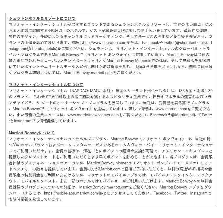 当ホテルでは、お客様および従業員の健康と安全を第一に考慮し、新たな時代と価値に順応した新サービス“New Normal Service”を導入しております。最新の衛生管理基準に即したおもてなしにより、皆さまの最高の笑顔をお約束いたします。横浜ベイシェラトン ホテル&タワーズでの対策についてはホームページにもご案内しております。こちらも併せてご確認ください。https://yokohama-bay-sheraton.jp/news/13/
