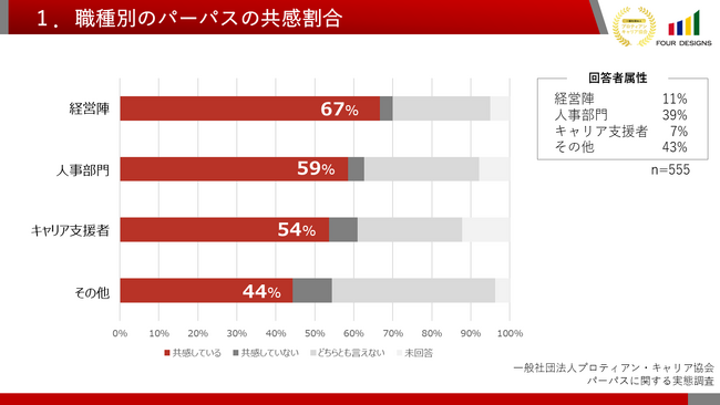 8/26(土)のフォーラム~未来を創るパーパスの可能性~の開催にあたり人事部門・キャリア支援者・経営層を中心に555人にパーパスへの意識調査を実施
