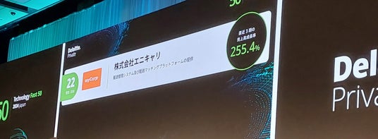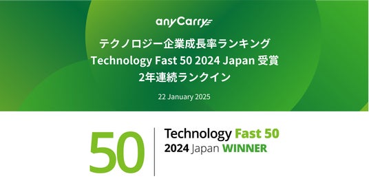 ラストマイル物流に特化した物流ソリューション事業を展開する株式会社エニキャリ(以下当社)は、デロイト トーマツ グループが2025年1月22日(水)に発表した日本国内のテクノロジー・メディア・通信業界の企業を対象にした過去3決算期の収益(売上高)に基づく成長率のランキング「Technology Fast 50 2024 Japan(以下「Fast 50」)」において、成長率255.4%を記録し、50位中22位を受賞しました。当社は前回「Technology Fast 50 2023 Japan」の1位受賞に続き、2年連続のランクインとなりました。