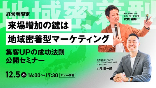 株式会社あつまる(所在地:東京都渋谷区・福岡市中央区)では2024年12月5日(木)にオンライン(Zoom)にて、「Digima」「TELE-ALL-ONE」の開発・販売、およびセールストレーニングワークショップの提供を行う株式会社コンベックス様と共催セミナーを開催いたします。