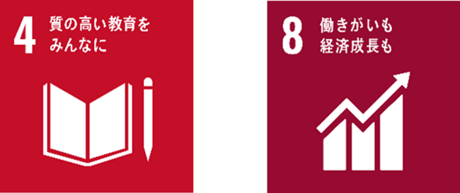 パーソルテンプスタッフでは、これらの取り組みにより、SDGs「4.質の高い教育をみんなに」「8.働きがいも経済成長も」に繋がっていると考えています。