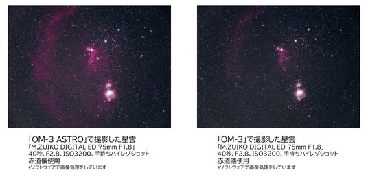 ※1 「OM SYSTEM OM-3 ASTRO」 はHα線の透過率を大幅に向上させているため、赤味の強い撮影画像になります