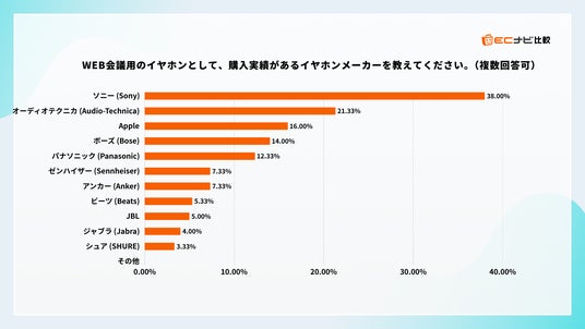 ・購入実績のあるメーカーは、「ソニー」(38.0%)、「オーディオテクニカ」(21.3%)、「Apple」(16.0%)