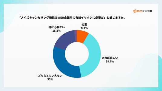 ・ノイズキャンセリング機能は「あれば嬉しい」(38.7%)という付加価値的な位置づけが主流