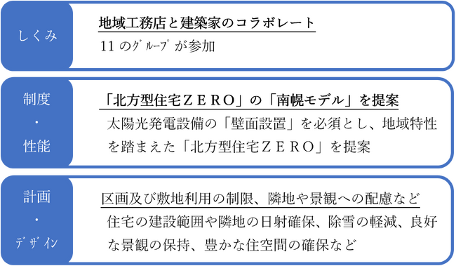 「ゼロカーボン北海道」の実現に向け、環境に優しい暮らしとまちづくりを提案するプロジェクトを開始。道と南幌町、北海道住宅供給公社、日本建築家協会北海道支部、北海道ビルダーズ協会それぞれが知識と経験を持ち寄り、南幌町ならではの「環境に優しく、豊かな暮らしを」提案します。