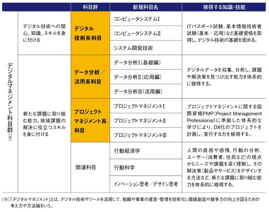 企業経営や経済の仕組みの学びに加え、デジタル技術やデータ分析、プロジェクト管理手法などを学び、企業の業務改善やイノベーション、地域課題の解決に取り組む「文系デジタル人材」を育成します。