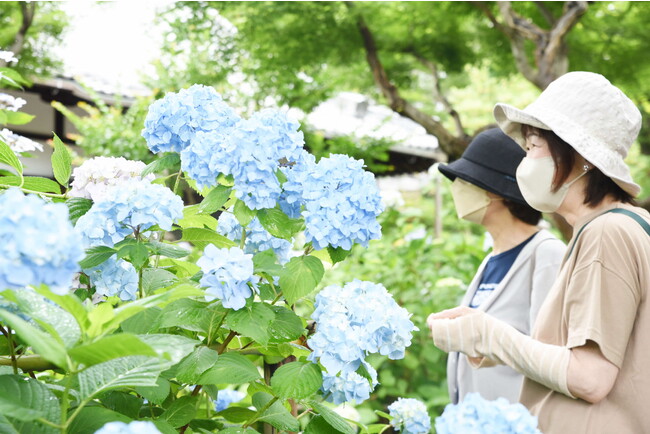 境内の参拝者は「賴光寺はいろいろな種類のあじさいが咲いており、とても見応えがあります。今シーズンは今日が二回目の参拝になりますが、来るたびに感動させていただいています」などと話していた。