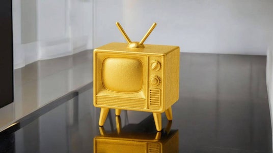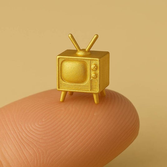 昭和の家庭に欠かせなかったチャンネルノブ付きテレビを、立体モチーフで再現