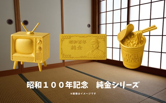 金ブランド「JUNGOLD(ジュンゴールド)」では、昭和元年から100年目という節目にあたる本年度に向け、昭和を象徴するモチーフを純金で再現した記念企画「昭和100年記念 純金シリーズ」を発表しました。