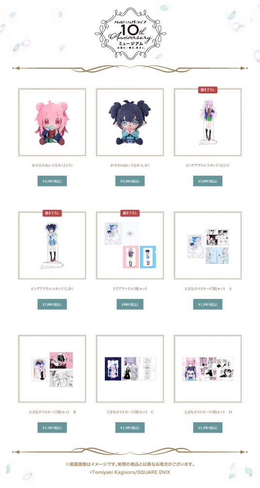 本日、ハッピーシュガーライフ10th Anniversaryミュージアム「永遠の一瞬を、貴方と。」 の新作グッズ第一弾を公式HPにて公開いたしました。また、東京会場への入場の事前WEB抽選を開始いたしました。皆様のご来場をお待ちしております。
