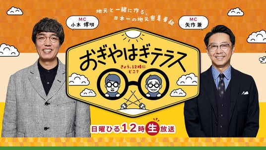 東海テレビの新番組 『おぎやはぎテラス きょう、12時にどこ?』が 2024年7月7日(日)にスタートします。 MCは東海ローカルの生放送レギュラー出演は初となる、おぎやはぎ。