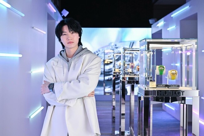 会場には、ウブロアンバサダーで俳優の山崎賢人をはじめ、多くのゲストが訪れ、ウブロのサファイアクリスタル製ウォッチコレクションが一堂に展示されたスペースで、ブランドコンセプト「アート・オブ・フュージョン(異なる素材やアイデアの融合)」を体感しました。