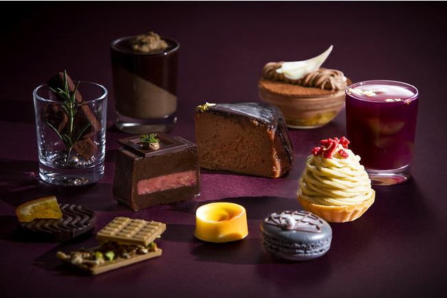 栗・カボチャ・さつま芋・葡萄などの秋の食材で作ったチョコレートスイーツをお好きなだけお楽しみいただけます。和食料理の職人が作る和スイーツも人気スイーツの一つ。また今年は、栗のパンナコッタやマロンケーキ、洋梨のコンポート チョコレートソース、カボチャとバニラのクッキーなど、彩り鮮やかなプチスイーツに、パン職人がこのビュッフェのために作るマロンデニッシュやフルーツサンドなどのブレッド類も見逃せません。