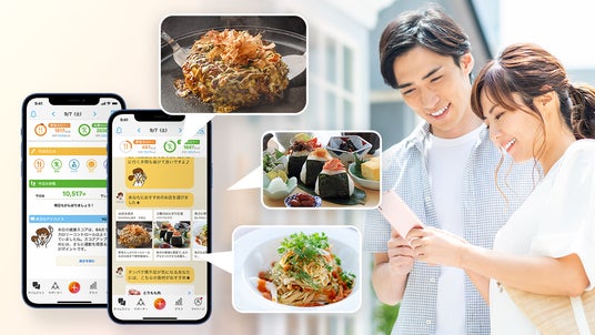 また大阪・関西万博のテーマウィーク「健康とウェルビーイングウィーク」に連動した期間展示に先行し、PHRを活用した新体験サービス「今日何食べよ?byカロママプラス ~あなたの体調や好み!?を考えたお食事をパーソナルにご提案」を、2025年5月14日(水)から「カロママ プラス」で先行スタートします。