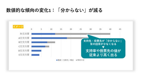 その分、支持や投票先の意向の値が高く出ており、回答の解像度の向上が期待できます。