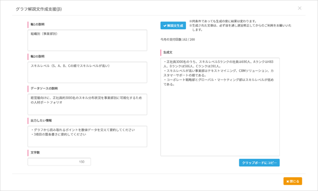 生成された解説文は、掲載前に人事部門や分析者があらかじめ手を加えブラッシュアップしてダッシュボード登録することも可能となります。