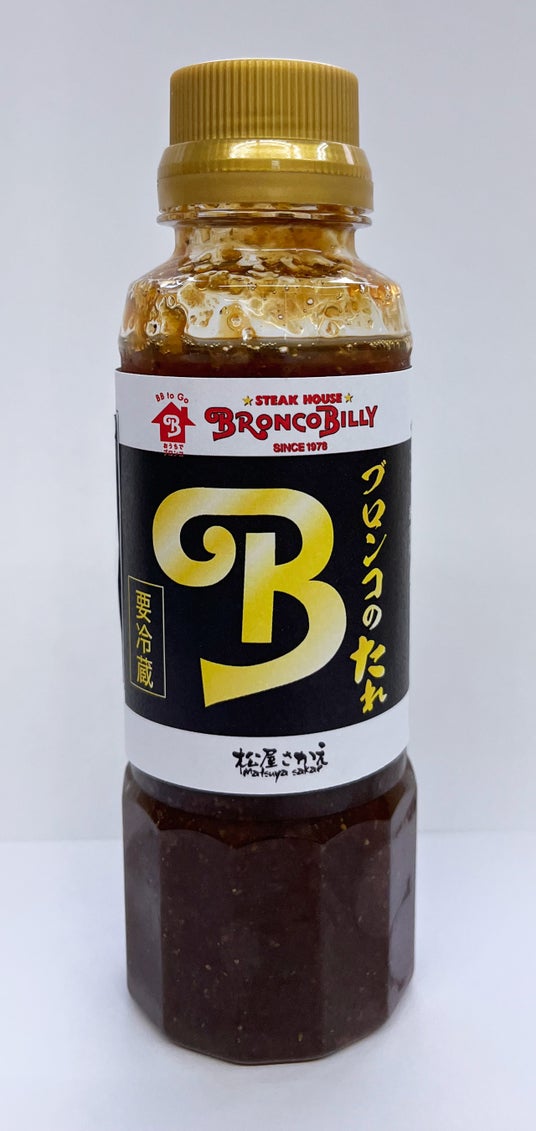 ステーキハウス ブロンコビリーを全136店舗展開する株式会社ブロンコビリー(本社:愛知県名古屋市 代表取締役社長:竹市 克弘)の子会社、株式会社松屋栄食品本舗(本社:愛知県犬山市 代表取締役社長:宮本 卓)は、ブロンコビリーで40年以上愛され続けてきた和風ステーキソース『ブロンコのたれ』と、人気No.1ドレッシング『和風ドレッシング』を、3月26日(火)より中部地区の一部スーパーで販売いたします。数種類の野菜や果物を生のまますりおろし、風味豊かな香りと味わいが贅沢な、チルドタイプの商品です。