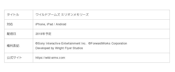 株式会社フォワードワークス(以下FW)は、スマートフォン向けゲーム『ワイルドアームズ ミリオンメモリーズ』を2018年に配信開始いたします。