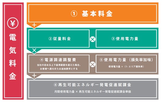 「Styleプラス B-FLAT」の電気料金は、基本料金、従量料金、再エネ賦課金、そして電源調達調整費で構成されています。