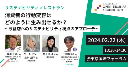 株式会社 博展は、主催する「サステナブル・ブランド国際会議2024 東京・丸の内(以下、「SB ‘24 東京・丸の内」)」 の開催期間にあわせ、2024年2月21日(水)、22日(木)に東京・丸の内にて、無料オープンセミナーを開催いたします。