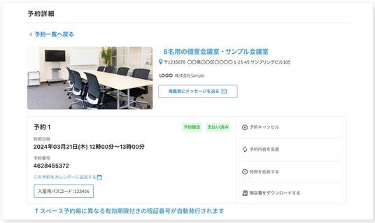 この度の連携では電子制御ドアにも対応が可能になったことで、マンション共用部の貸出、自社オフィスの会議室の貸出、商業施設の休日貸出など、建物の入口から使用するお部屋まで、鍵の受け渡しの手間がない、無人運営を実現いただくことができます。