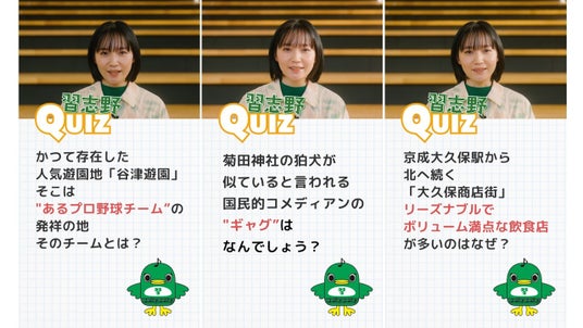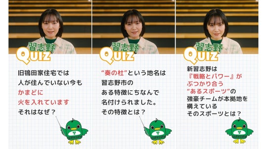 本市PR大使の鈴川絢子さんが、6つの駅エリア(谷津・京成津田沼・京成大久保・実籾・JR津田沼・新習志野)に関係するクイズを出題!