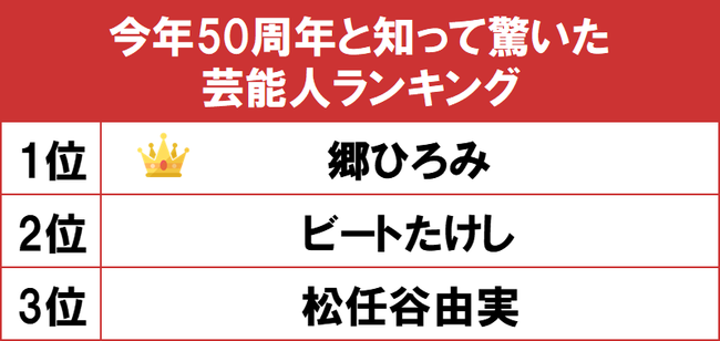 gooランキング(グーランキング)は、世の中のあらゆる「こと・もの」をランキング化する国内最大級のランキング情報サイトです。今回は、2022年で活動開始から50周年を迎える芸能人をテーマに、今年で50周年と知って一番驚いた芸能人は誰なのかについて調査・ランキング化しました。
