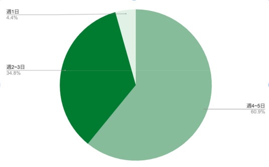 週2~3日の中程度の稼働は34.78%となっており、プロジェクトの規模や役割に応じて柔軟な働き方も可能となっています。