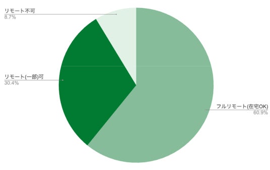 一部リモートワークが可能な案件は30.43%であり、ハイブリッドな働き方を採用するプロジェクトも一定数存在することが分かりました。
