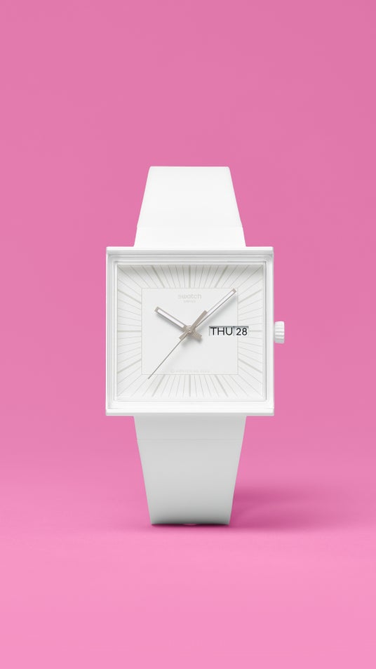 もし革新的なタイムピースをお探しなら、このスタイルには科学的な裏付けがあります。このコレクションは、Swatch の革新的なBIOCERAMIC 素材によって実現しています。セラミックパウダーとバイオ由来の素材を組み合わせることで、スウォッチのBIOCERAMIC は優れた強度と耐久性を実現し、独自の四角形のWHAT IF? デザインを作り出しています。