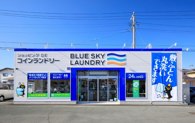 ブルースカイランドリーは2015年6月に1号店をオープンし、現在全国193店舗(うち災害対応型ランドリー:78店舗)展開しており、香川県では初出店となります。ブランドコンセプトとして、商業施設の敷地内に店舗を構え、買い物をしている間に洗濯ができる【ショッピングDEコインランドリー】、家事や育児に忙しいご家庭に、清潔で安心して使えるランドリーのご提供、家事の軽減や家族との時間を増やすため、コインランドリーを上手に利用した【コインランドリーのあるライフスタイルの提案】を推奨し、より多くの方に生活の一部としてコインランドリーの浸透を進めています。店舗の特徴として、9:00~12:00までスタッフが常駐し(※一部店舗を除く)店内の清掃・接客を行い清潔な店舗、お洗濯のアドバイスをしています。またサービス面・防犯面におきましても、専用のコールセンター、監視カメラを設置することにより、お客様に安心してご利用いただける店舗となります。