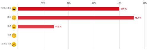 アコムの即日融資の満足度評価では、「非常に満足」「満足」との評価が合計で9割近く集まった。