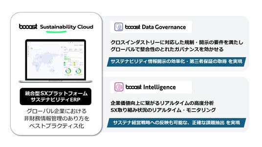 To address the evolving mandatory sustainability disclosure requirements for large global enterprises -including compliance with ISSB (International Sustainability Standards Board), CSRD (Corporate Sustainability Reporting Directive), and SSBJ (Sustainability Standards Board of Japan)- we have enhanced our Sustainability Cloud version. In this enhanced version, we have implemented two new features - “booost Data Governance” and “booost Intelligence”- designed to strengthen three key areas: "faster sustainability disclosure" through efficient and accurate data collection, "internal controls" for obtaining third-party assurance based on global governance, and "advanced sustainability data analysis" to identify issues from aggregated data and inform management strategies.