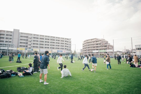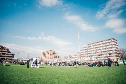 セレモニー終了後、一般のどなたでもご来場いただける地域開放がスタート。グラウンドの大部分は草っぱらタイムとして市民の方々に開放され、サッカーやバドミントンなどで人工芝を駆け回る人から、日向ぼっこを楽しむ人まで多くの方が楽しんでいました。