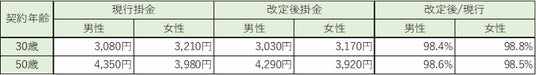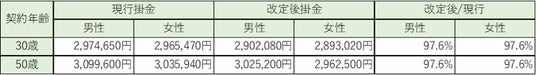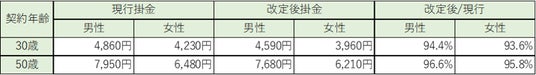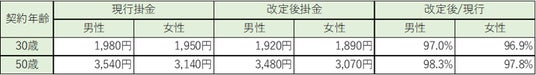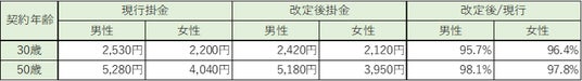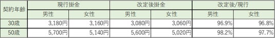 改定後の掛金例は、つぎのとおりです。
