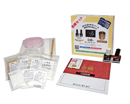 初心者でもすぐに金継ぎを始められる天然の漆を使用したセット。工程ごとの解説動画も見ることができます。