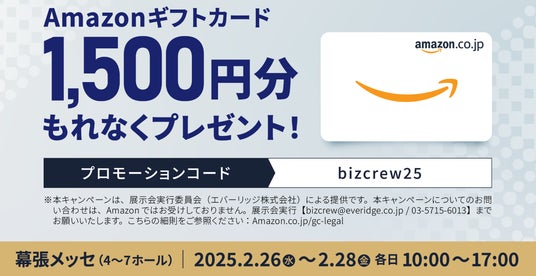 ・Amazonギフトカードは、上記条件をすべて満たしている来場者様を対象に、会期1か月後を目安に事務局よりメールにて進呈いたします。