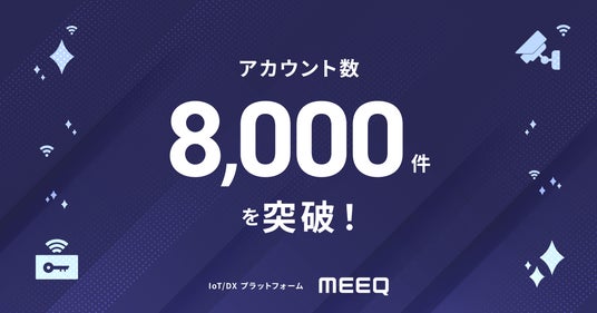 IoT事業者および企業向けにIoT/DX プラットフォーム『MEEQ(ミーク)』を提供しているミーク株式会社(本社:東京都渋谷区、代表取締役 執行役員社長:峯村竜太 以下、当社)は、『MEEQ』のアカウント※1数が8,000件を突破したことをお知らせします。