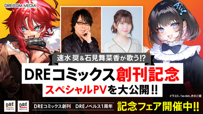 株式会社ドリコム(本社:東京都品川区、代表取締役社長:内藤裕紀)の出版・映像ブランド「ドリコムメディア」は、2023年10月25日にコミックレーベル「DREコミックス(ドリコミックス)」を創刊しました。また、ライトノベルレーベル「DREノベルス」も10月で1周年を迎えました。これを記念して、豪華声優陣出演の創刊記念PVを公開、また全国の書店・電子ストアで記念フェアを開催することをお知らせいたします。