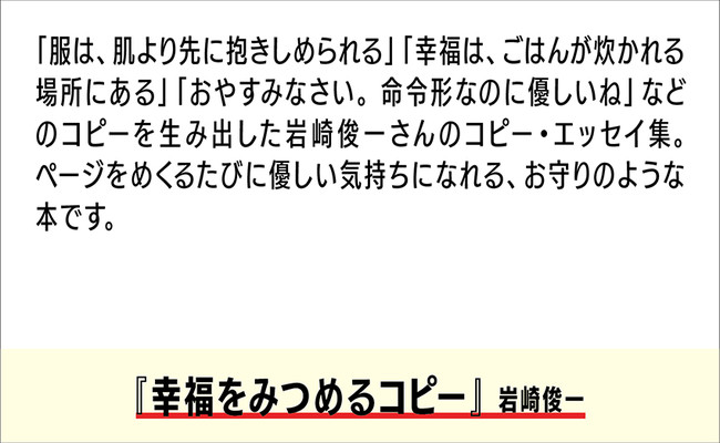 コピーライターならではの選書から、エッセイ、小説、教養書など、幅広いジャンルが書店に並んでいます。