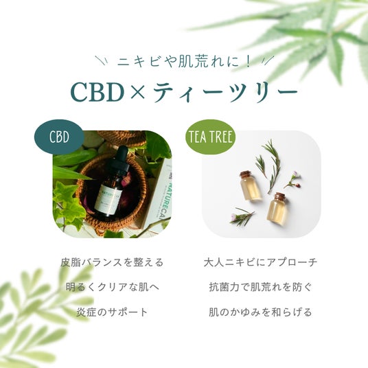 ・「CBDティーツリークリーム」には、大人ニキビにアプローチする整肌成分 ティーツリーオイル配合