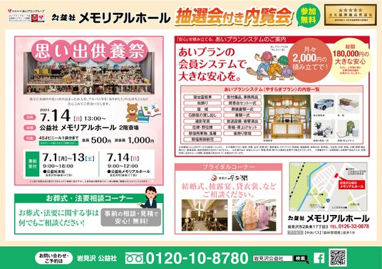 事前受付: 7/1(月)~13(土) 9:00~18:00 公益社本社(岩見沢市4条東14丁目1)