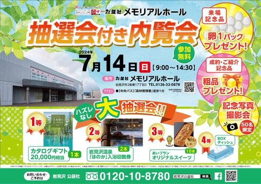 公益社メモリアルホールを実際にじっくりとご覧いただける、「抽選会付き内覧会」を開催いたします。