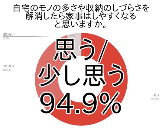 そこでアンケートでは、自宅のモノの多さや収納のしづらさを解消したら家事はしやすくなると思うか尋ねました。