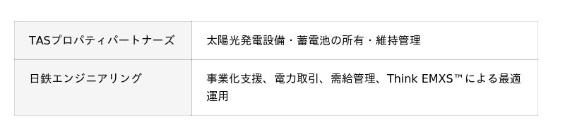 日鉄エンジニアリング株式会社(代表取締役社長:石倭行人、本社:東京都品川区、以下「当社」)は、このたび株式会社東京アセットソリューション(代表取締役社長:寺敷信昭、本社:東京都港区)の100%子会社である株式会社TASプロパティパートナーズ(代表取締役社長:河野豊、本社:東京都港区、以下「TASプロパティパートナーズ」)から同社が所有・運用する太陽光発電所「TAS熊本三角ソーラーファーム」について、FIP制度※1移行後の電力運用を受託しましたのでお知らせいたします。