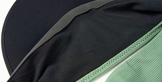 汗冷え対策アンダーウエア「ドライレイヤー」にも使用される高機能撥水生地に、薄手でありながら強度に優れた生地を組み合わせることで、汗の多い額から後頭部にかけての頭囲を快適に保つための高い汗処理性能と軽量性を実現しました。