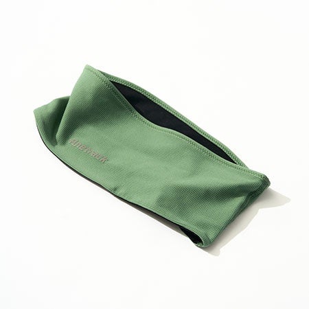 ●ランニングや自転車などのスピードを伴うアクティビティに適した、軽い着用感と蒸れにくさを備える薄手生地のバイザー&ヘッドバンド。